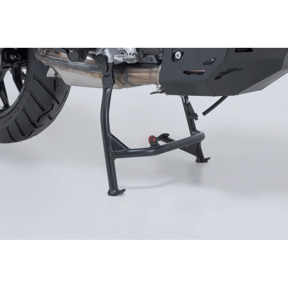 Les constructions tubulaires en acier à la fois indestructibles et légères offrent la meilleure garde au sol et le meilleur angle d'inclinaison, une mise sur béquille aisée et une excellente stabilité - que ce soit pour la maintenance de la moto ou pendant les déplacements. L'achat d'un autre système de levage pour la maintenance est souvent superflu. Idéal pour les mois d'hiver : pendant les longues périodes d'immobilisation la béquille centrale préserve les pneus.