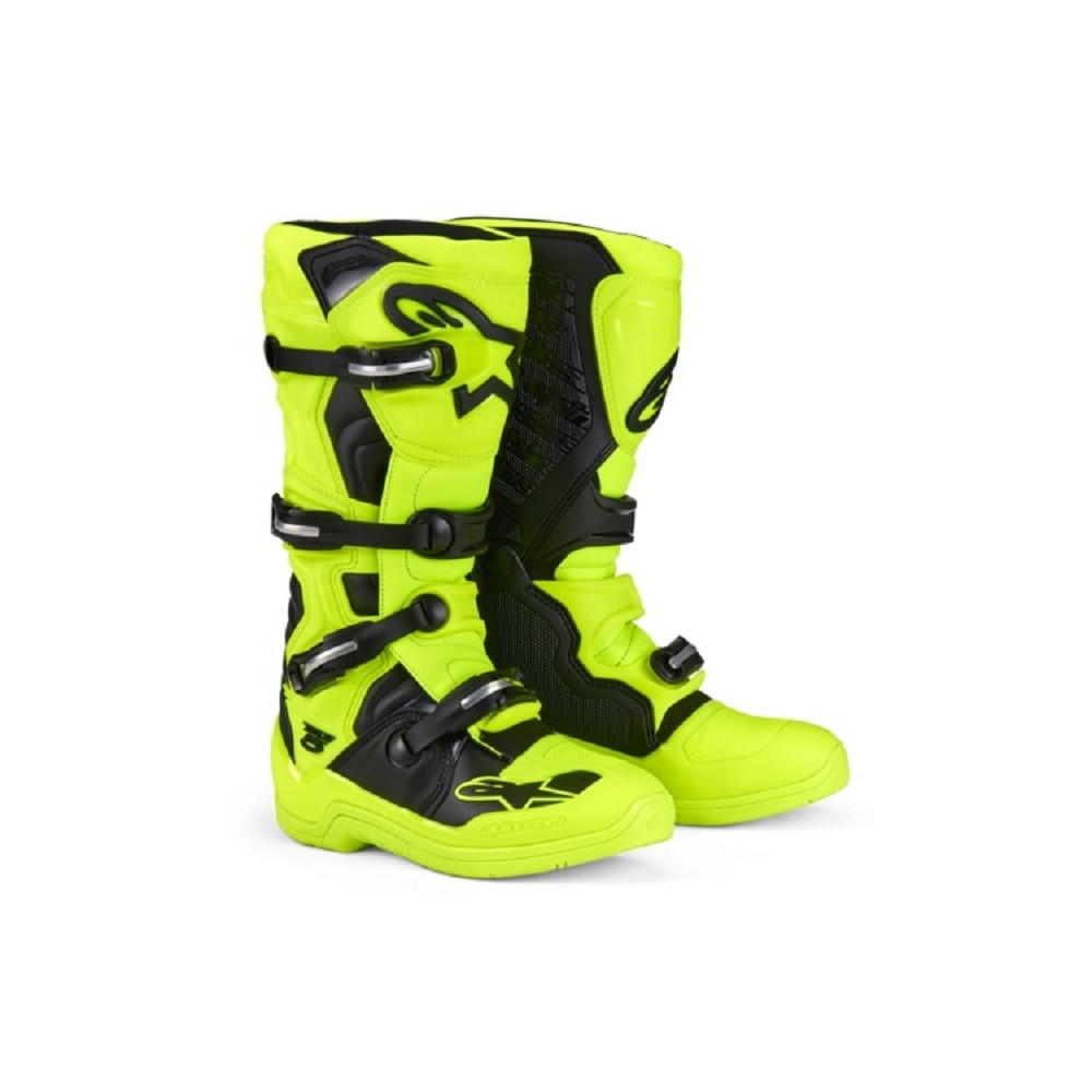 Alpinestars MX s'est inspiré de ses bottes Tech 10 et Tech 7 pour créer les bottes Tech 5. Grâce à leur châssis en microfibre à la fois durable et léger, et à un polymère synthétique sur l'embout, ces bottes sont faciles à nettoyer et à entretenir. Une plaque de protection du tibia profilée offre un ajustement optimal et est dotée de panneaux de fermeture réglables par Velcro®. Les bottes Alpinestars MX Tech 5 sont équipées d'une coque de pied monobloc innovante en TPU injecté, offrant une excellente résistance à l'abrasion et aux impacts, ainsi que d'une mousse souple enveloppant les chevilles et le col pour absorber les chocs.