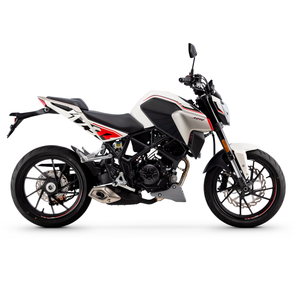 Vivez la liberté sur deux roues avec la NK 125R. Une moto qui allie légèreté, design sportif et une personnalité unique. Avec seulement 135 kg, elle est incroyablement agile et son style agressif vous permettra de vous démarquer à chaque trajet.