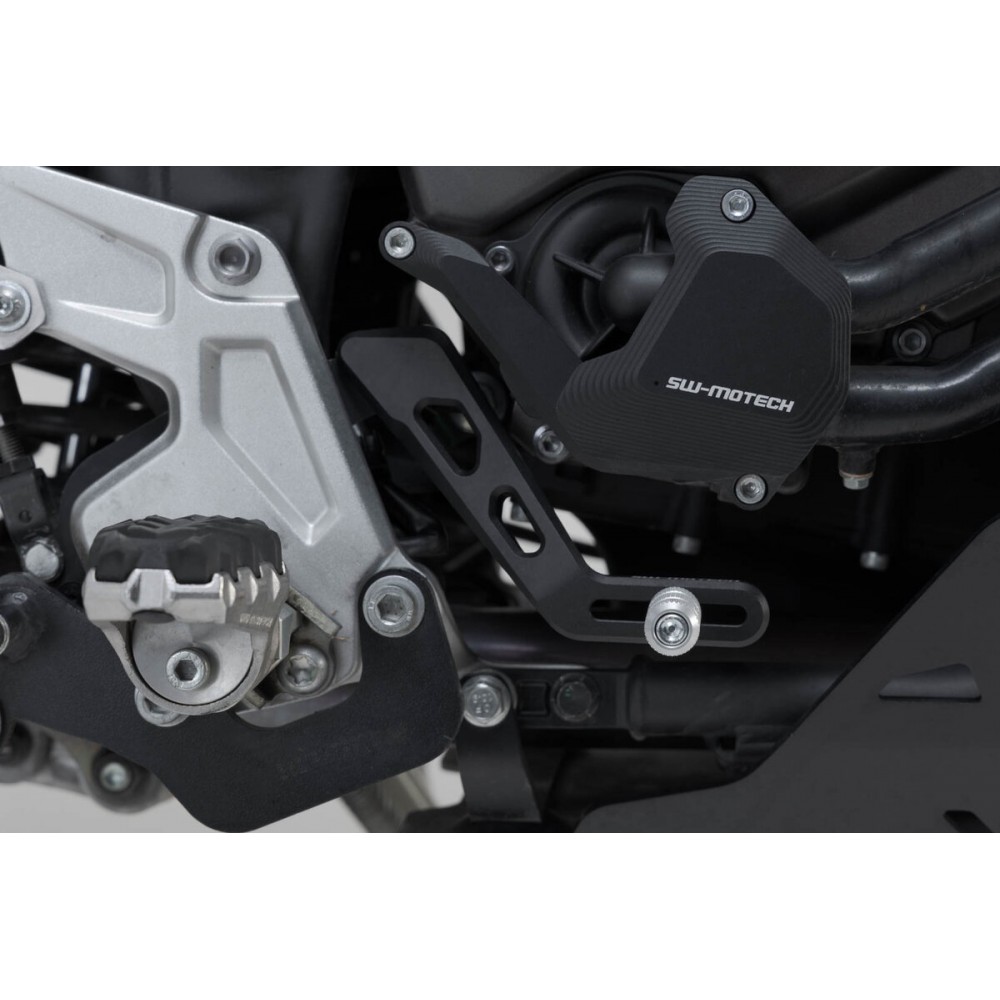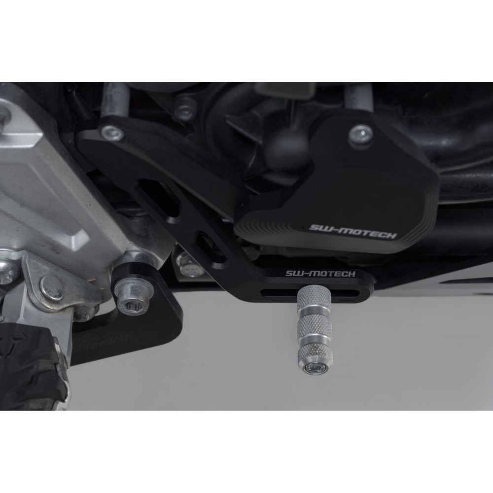 La pédale de frein réglable, en aluminium fraisé de haute qualité avec revêtement HART-COAT®, permet une meilleure maniabilité et un meilleur dosage du frein. La pédale de frein SW-MOTECH peut être ajustée en longueur de 5 cm, de sorte qu'elle s'adapte à chaque pied et à chaque style de conduite. La surface moletée de l'embout augmente l'adhérence et offre une meilleure stabilité pour la conduite sportive et les longues sorties. Avec l'embout Adventure disponible séparément, tu doses plus facilement ton freinage, en particulier lorsque tu roules en position debout en off-road.