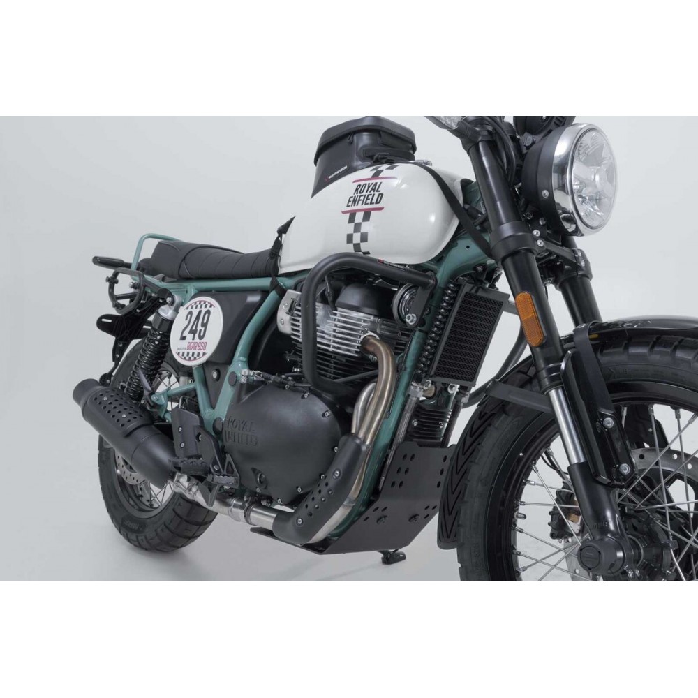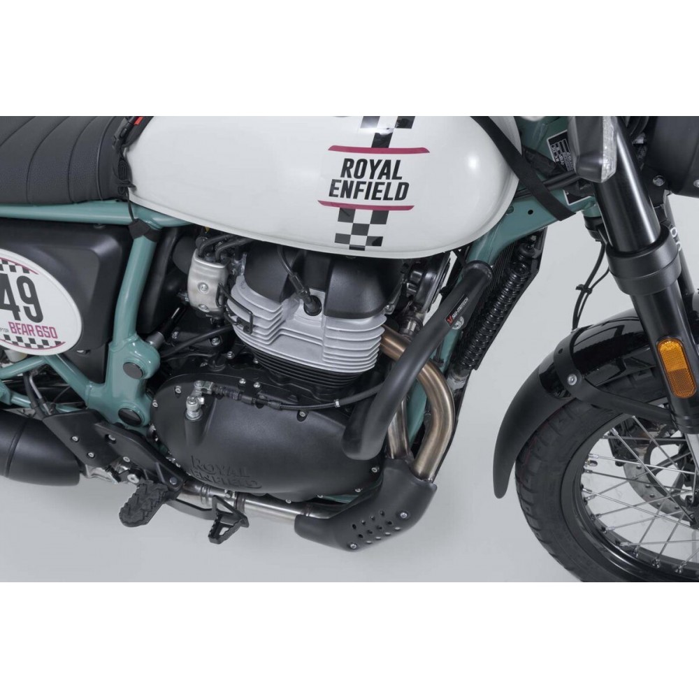 Ce robuste arceau en acier inoxydable spécialement conçu pour la Royal Enfield Bear 650 protège votre moteur et ses composants des rayures et des dégâts dus aux chutes. L'emploi d'acier inoxydable sablé et électropoli, au lieu d'acier galvanisé, offre l'avantage qu'il n'y a pas de risque de diminuer la protection contre la corrosion après un éclat de peinture.