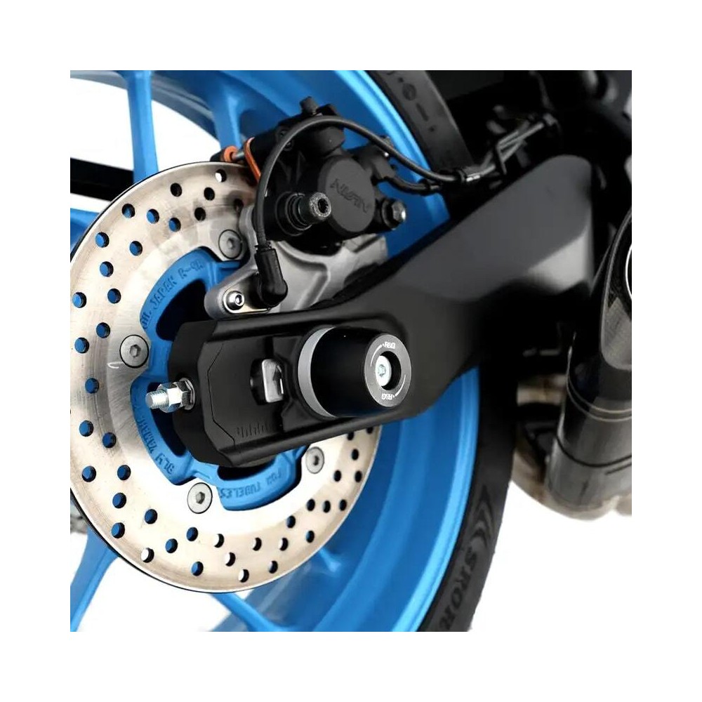 Les protections de bras oscillant R&G sont destinés à protéger la partie arrière inférieure de la moto en cas de chute.