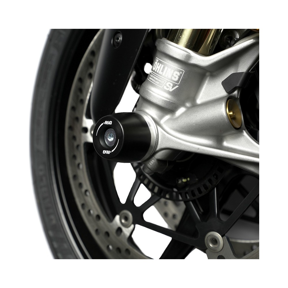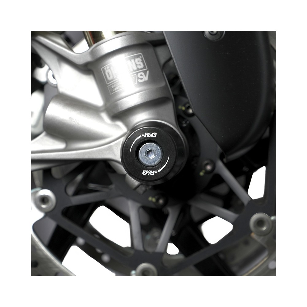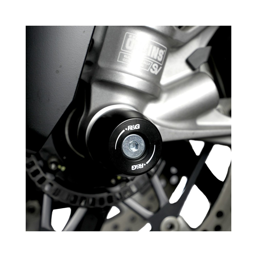 Les protections de fourches R&G Racing permettent de protéger le bas de fourche ainsi que les disques et étriers de freins en cas du choc ou de chute.