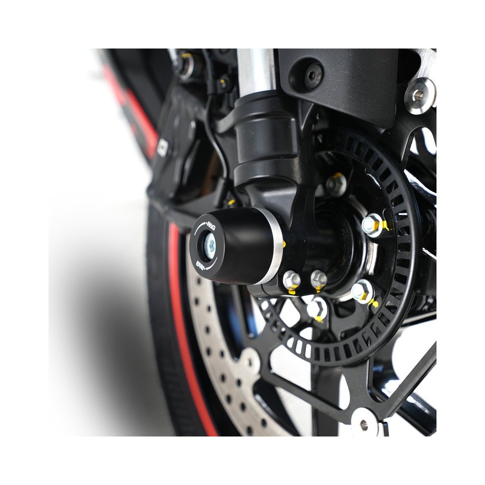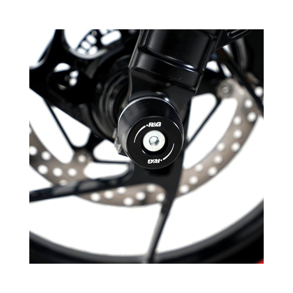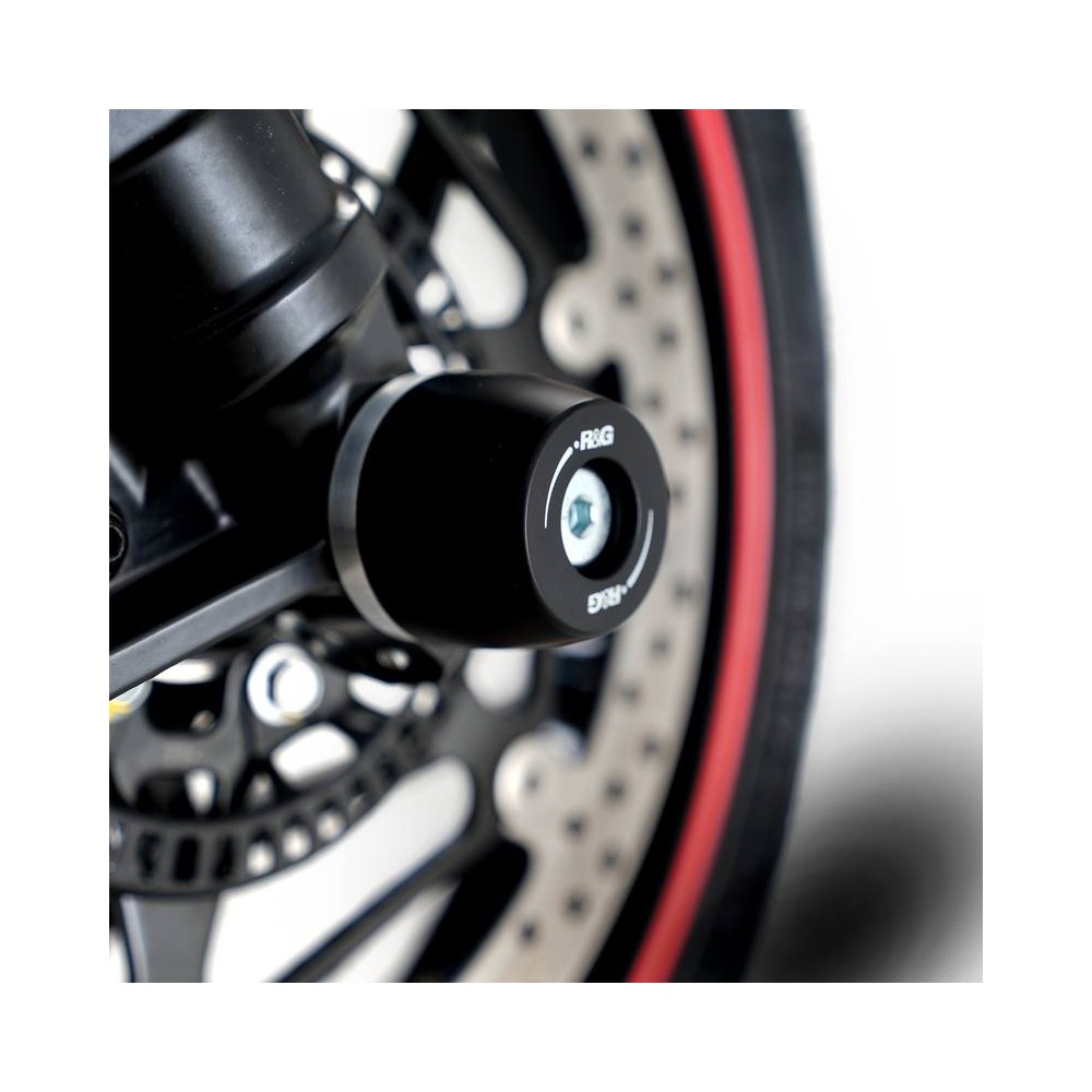 Les protections de fourches R&G Racing permettent de protéger le bas de fourche ainsi que les disques et étriers de freins en cas du choc ou de chute.