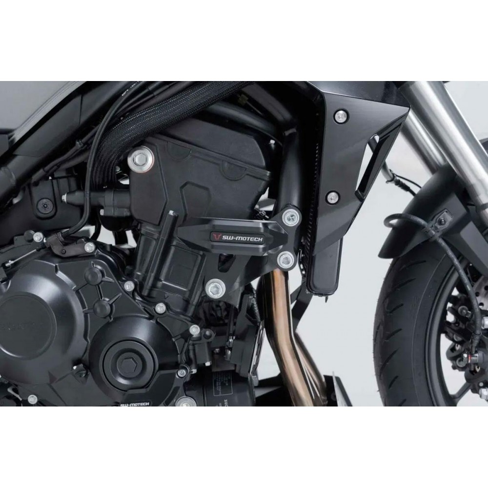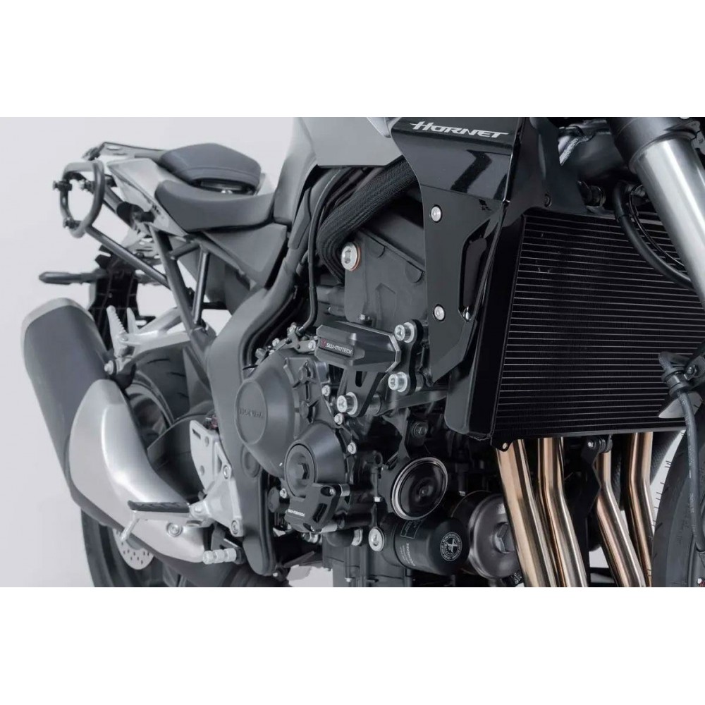 Une protection supplémentaire en cas de chute offre une protection anti-choc au cadre. La forme, la surface et le matériau garantissent d'excellentes propriétés de glissement et réduisent les dommages causés à la moto.