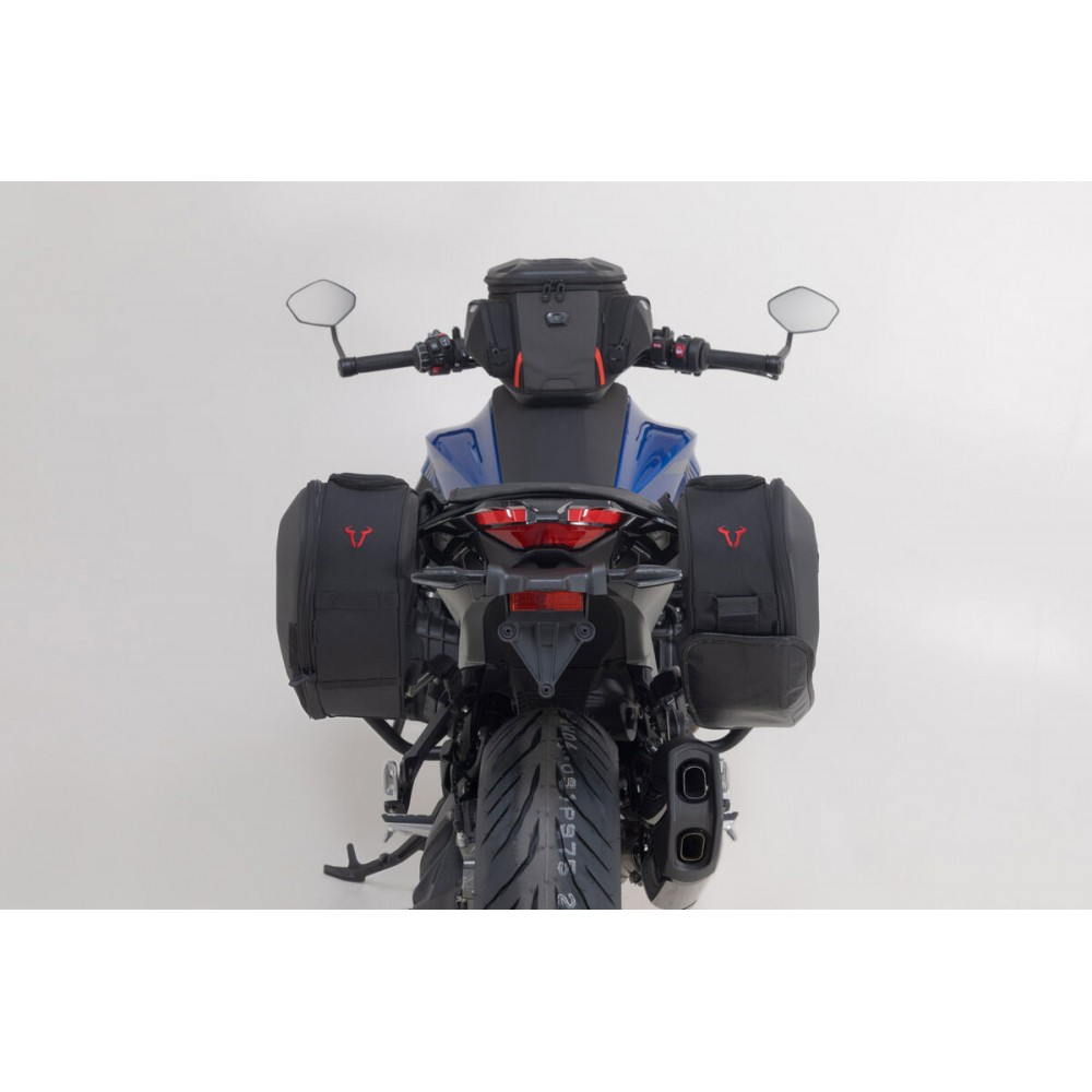 Conçues spécialement pour les motos sportives, les sacoches latérales n'influent que très peu sur les performances de conduite. Si vous vous déplacez sans bagages, les supports amovibles s'enlèvent en un tour de main ; seules les fixations à peine visibles restent alors sur la moto.