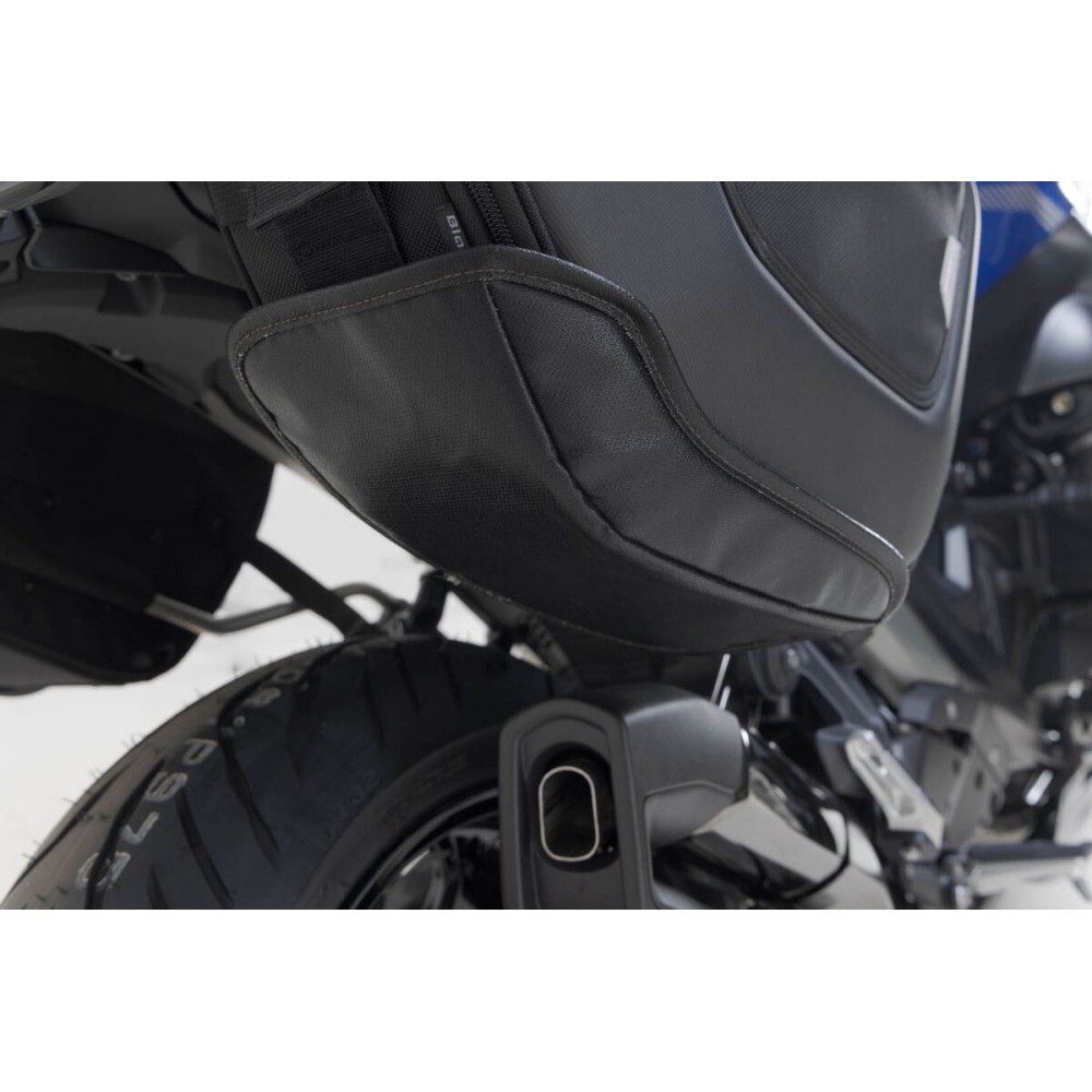 La version haute des sacoches latérales PRO BLAZE a été spécialement développée pour les motos à échappement en position haute. En raison de leur position élevée, les sacoches ne sont pas affectées par le rayonnement thermique des gaz d'échappement. SW-MOTECH produit ce set de sacoches avec des supports latéraux adaptés à les BMW R1300R / RS.