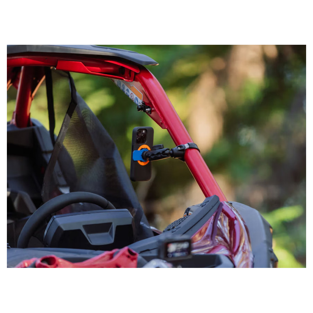 Ce support Quad Lock 360™ comprend la base, le bras et la tête Quad Lock 360™, idéal pour fixer un appareil sur un véhicule tout-terrain, UTV, ATV, véhicule de course ou autres barres de protection.